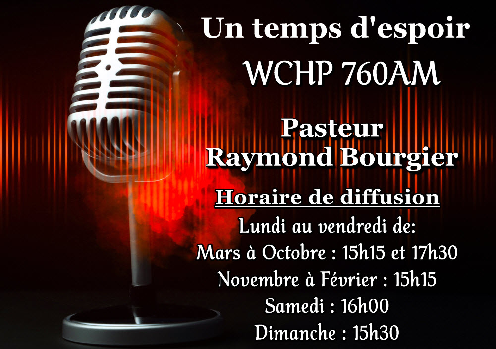 Nous désirons vous aider à briller parmi les ténèbres de ce monde qui est sous l’emprise du diable à travers notre émission radiophonique "Un temps d’espoir" présentée tous les jours sur WCHP 760.